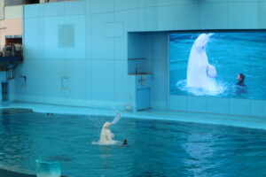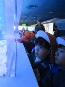 水族館の中ではペンギンの泳ぐ姿を見たり、白くまをみたり、サメをみたり、じっくり回ることができました。