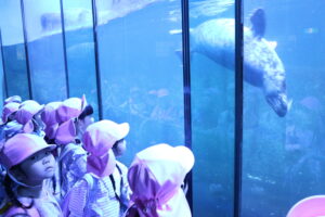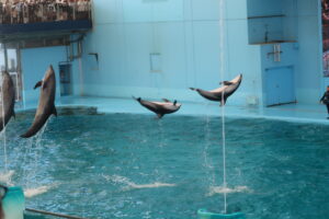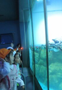 昨日からワクワクしていたため、水族館に到着すると「早くイルカ見たいよ!」「ペンギンいるかな」と話していました。イルカのショーでは、セイウチの大きさにビックリしたり、イルカたちのパフォーマンスに拍手をしたり楽しんで見ていましたね。