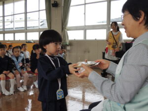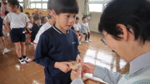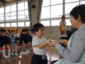 最後に園長先生からかわいいネコのおせんべいをいただきました。