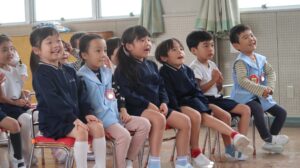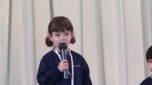 7名のインタビューでは先生にマイクが戻ることなく進み、上手に名前と年齢を言うことができましたね。