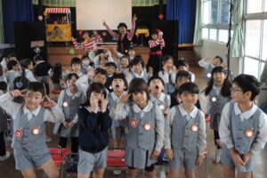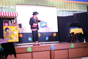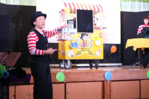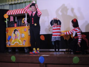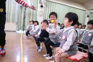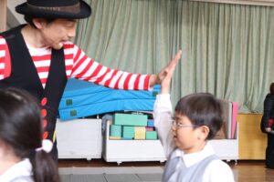 今日は幼稚園に、ゆうさんが来て紙芝居やマジックショーなど楽しいパフォーマンスを見せてくださいました。