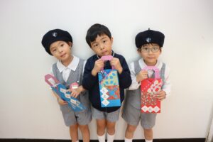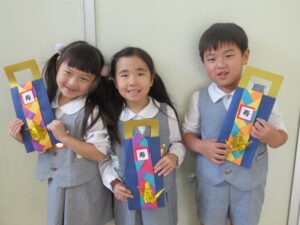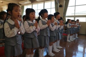 最後は、神父様に祝福していただいた千歳飴と御絵を園長先生からいただき、子どもたちは「早く食べたいな」と言いながら大事に持ち帰りました。