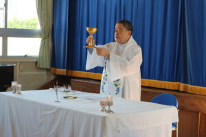 神父様のお祈りに合わせながら手をお胸にし、日頃の感謝を込めてきちんとお祈りすることができました。