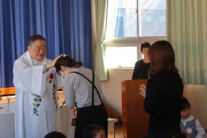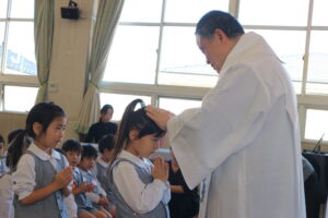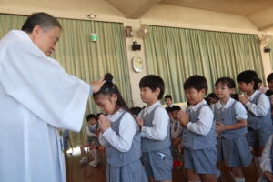 子どもたち職員、保護者の方々も神父様より祝福にあずかりました。