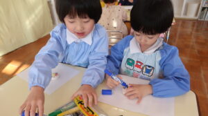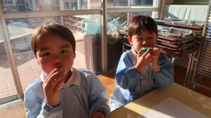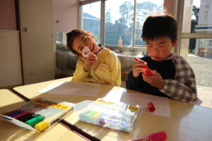 「どんな音がするのかな?」と気になり吹いてみると「ピー」と高い音が出て、みんな嬉しそうでしたね。