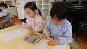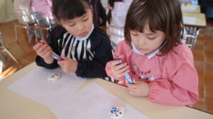 白いオカリナにマジックペンで好きな模様や絵を描き色付けをしていきました。