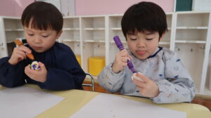 はやぶさやこまちの新幹線のイメージカラーを塗る子など、自分だけのオカリナができました。