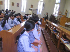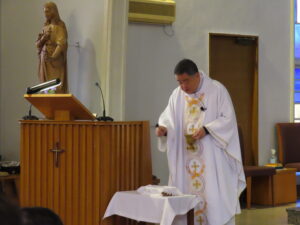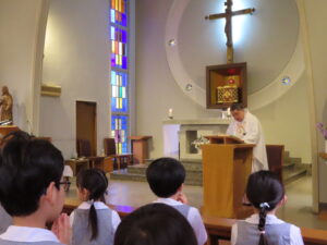 いつもは神父様が幼稚園に来て御ミサをあげてくださいますが、今回は山本神父様の教会を訪ねることができ貴重な時間となりました。