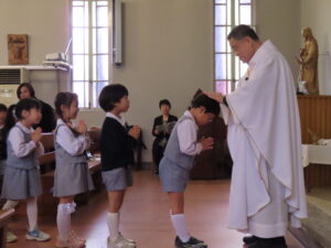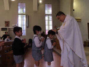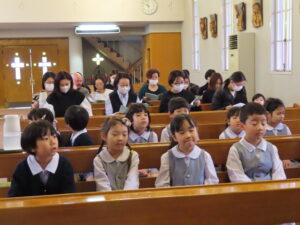 本日は卒園感謝のミサでした。カトリック成城教会で山本量太郎神父様の司式のもとミサにあずかりました。