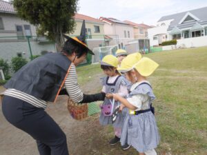 内 容: 園庭を開放します。魔女や動物!?から何かがもらえるかも?マリア組、年少組の子どもたちと一緒に楽しみましょう!