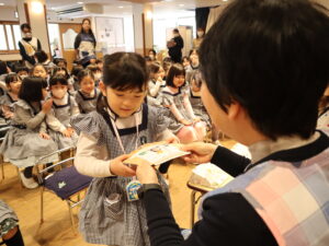 園長先生からプレゼントをいただき、嬉しそうでした♪