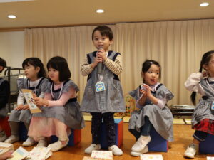 クラスや名前、何歳になったのかをお友だちの前で発表できました!