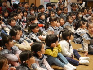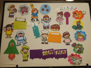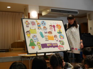 最後のお楽しみはペープサートで「おおきくなったらなりたいな」をみて、