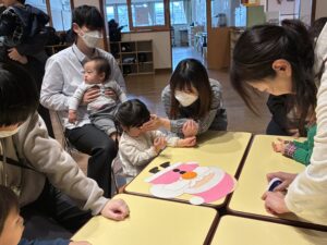 おうちの方と協力して作ったサンタの「ふくわらい」では、個性的ななサンタさんが4体できました。