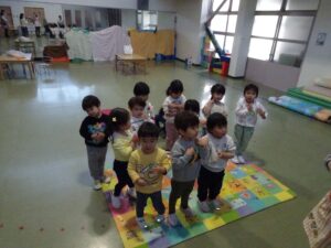 朝のお祈りでは、幼稚園で歌う『小さいおてて』をうたいました。毎回うたうので少しずつ覚えていきましょう。