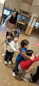 最後に、電車ごっこでトイレに出発!座れる子が多くなってきましたよ(^▽^)/