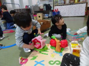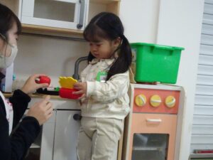 先生たちとお話したり、おもちゃで遊んでいるうちに、表情も和らぎ楽しく過ごすことが出来ました。