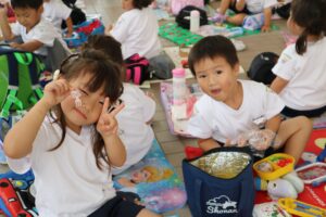 年少組さんは、レジャーシートを自分で敷いて片付けも上手にできました!