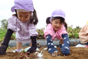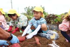 今年のお芋は紅はるかでした。大きいお芋、長~いお芋、まぁるいお芋。いろいろな形のお芋が出てきました!