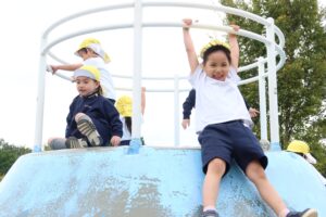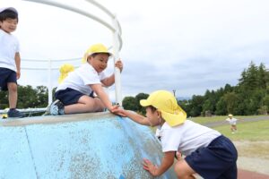 遊具で遊んだり、ドングリを拾ったり、コスモス畑を見たり